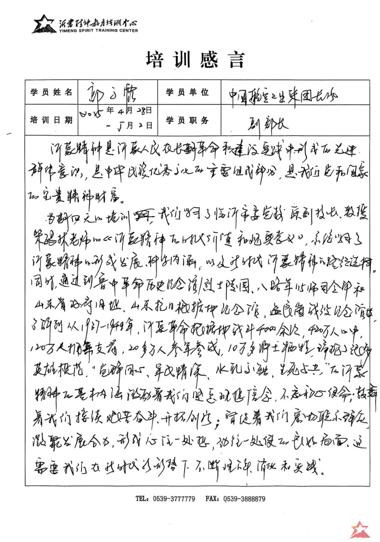 结班式上,临沂沂蒙精神教育培训中心党支部书记、常务副主任邢庆杰对被本次培训学习给予高度评价。