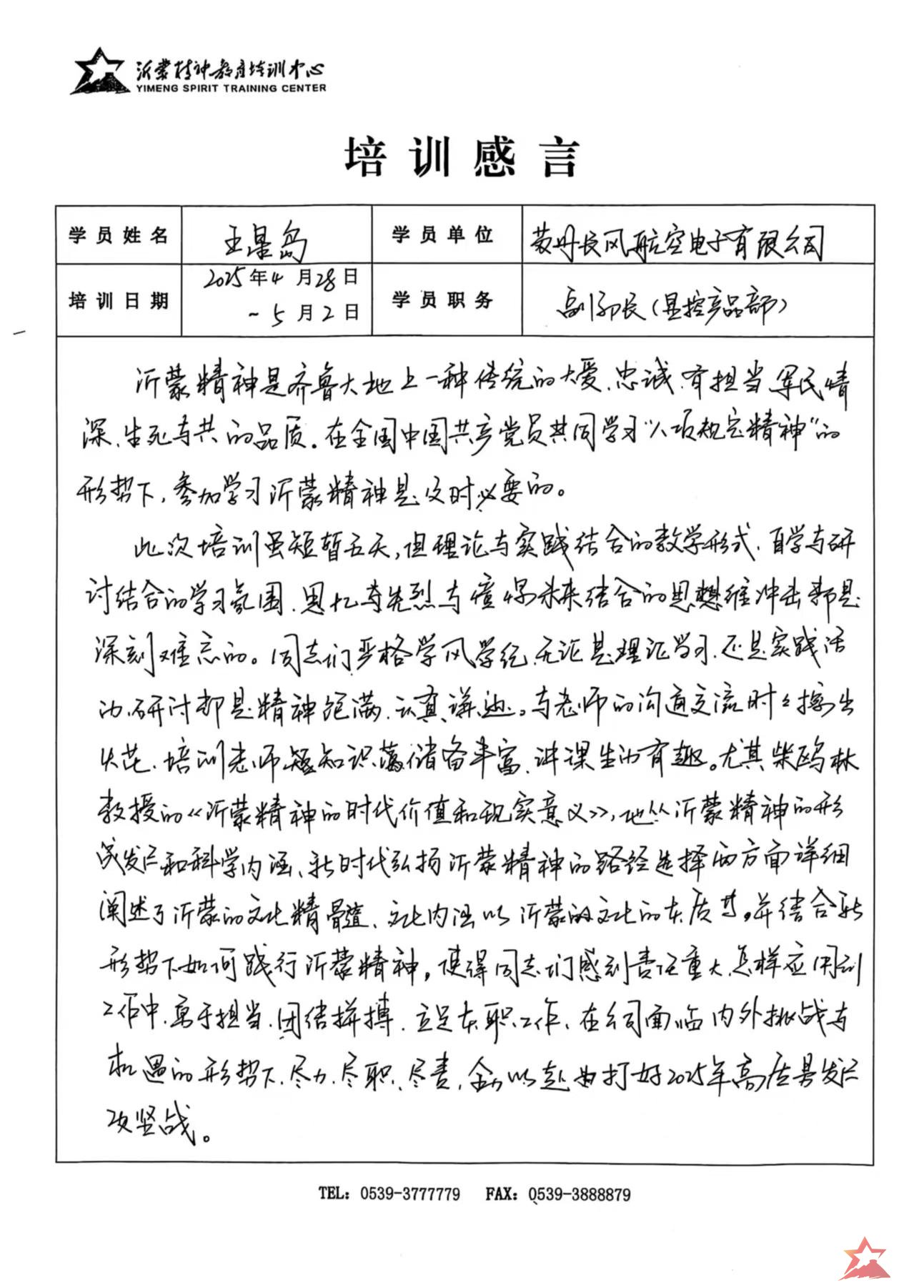 通过形式多样的灵活教学,将红色文化、沂蒙革命历史和沂蒙精神学习融为一体,使学员的心灵得到洗礼,思想得到升华,党性得到锤炼。大家纷纷表示,来到沂蒙山接受红色教育就是回望源头,补足精神之钙,在今后的工作中,努力把学习教育成果落到实处,让沂蒙精神在我们长风远航的工作实践中放射出新的时代光芒。