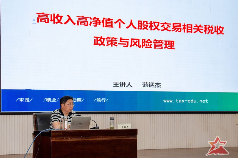 国家税务总局税务干部学院税收征管教研部副教授范锰杰作《高收入高净值个人股权交易相关税收政策与风险管理》专题报告