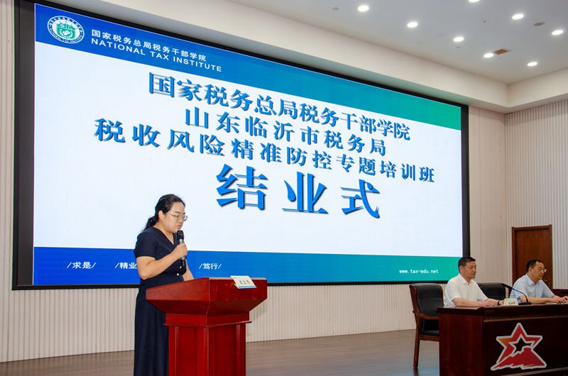 学员代表河东区税务局税收风险管理股股长何晓云上台发言。她从学习收获、思想转变和未来行动三个方面汇报了学习感悟,“聚是一团火,散是满天星,希望我们大家像一颗传递光亮的星星,将培训的收获分享给身边的同事,带动团队的共同进步。”