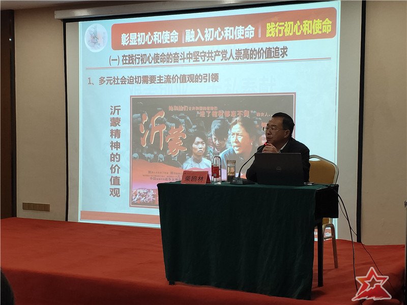 11月8日上午,由临沂市人大常委、中共临沂市委党校原副校长、山东省党建研究会理事、沂蒙干部教育培训中心特聘教授柴鸥林讲授了《弘扬沂蒙精神践行共产党人的初心和使命》。柴校长主要围绕沂蒙精神“彰显初心使命、融入初心使命、践行初心使命”三个方面进行讲授,深入浅出,引人入胜。让在场学员充分领悟到了沂蒙精神的深刻内涵和时代价值,成为此次培训一大亮点。