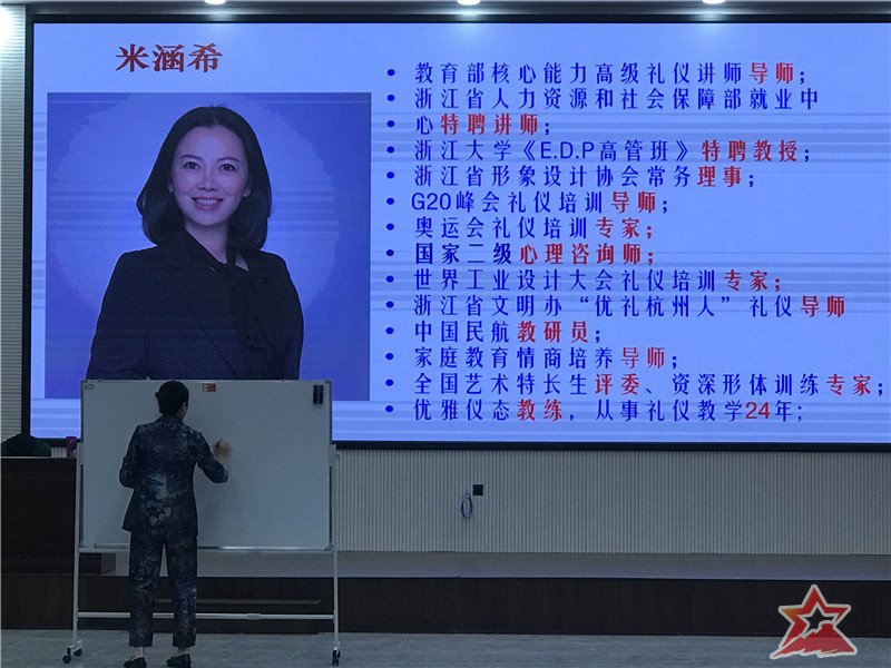 10日,培训班邀请到教育部核心能力高级礼仪讲师导师、G20峰会礼仪培训导师、浙江大学《E.D.P高管班》特聘教授、奥运会礼仪培训专家米涵希老师,亲临现场为培训班学员讲授了《职业形象塑造》的课程。