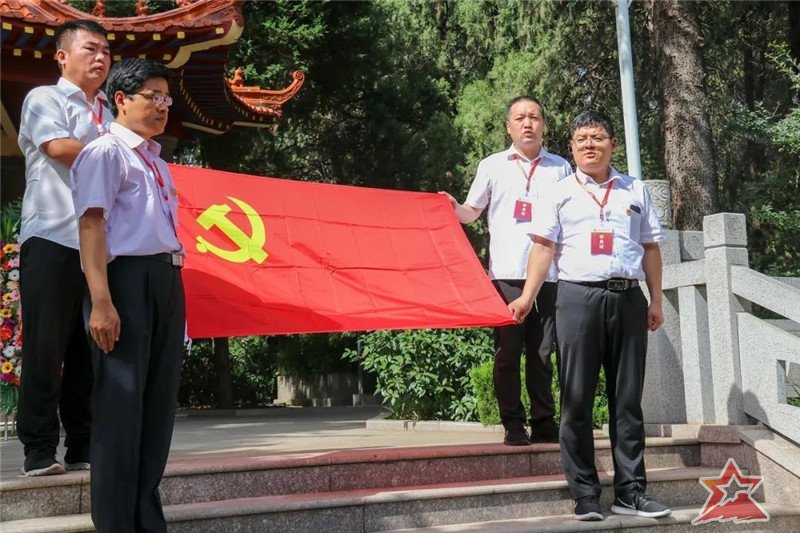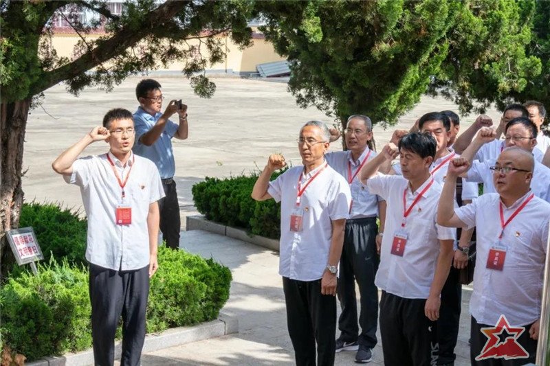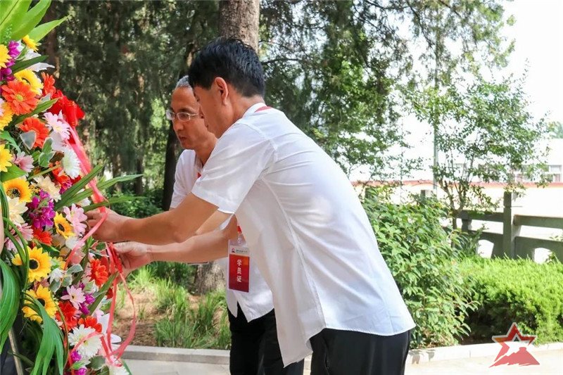6月12日上午,学员们来到大青山突围纪念馆进行现场教学。学员们瞻仰了英烈纪念碑,向革命英烈敬献了花篮,所有党员同志面对鲜红的党旗,庄严举起右拳,重温了中国共产党入党誓词。