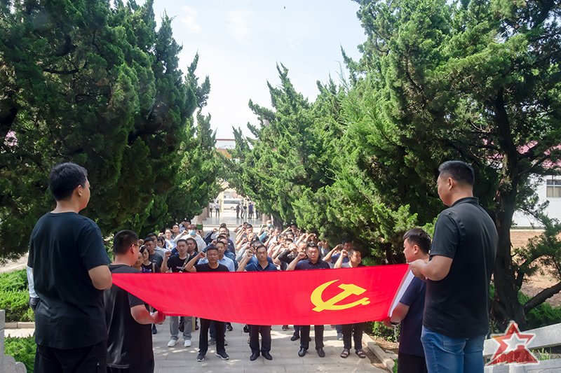 6月19日上午,学员们来到大青山突围纪念馆进行现场教学。学员们瞻仰了英烈纪念碑,向革命英烈敬献了花篮,所有党员同志面对鲜红的党旗,庄严举起右拳,重温了中国共产党入党誓词。