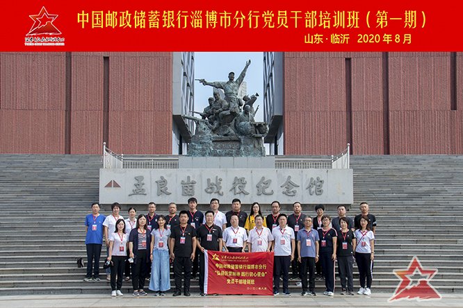 2020年8月28日至8月30日,中国邮政储蓄银行淄博市分行党员干部培训班第一期,在沂蒙干部教育培训中心成功举办。本期培训班共有来自中国邮政储蓄银行淄博市分行的近30名党员干部参加了培训。