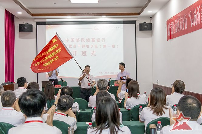8月28日下午,培训班举行开班仪式,在开班仪式上,沂蒙干部教育培训中心党支部书记、副主任薛维波致欢迎辞并授班旗,中国邮政储蓄银行淄博市分行党委委员、纪委书记、副行长关风光同志作动员讲话。