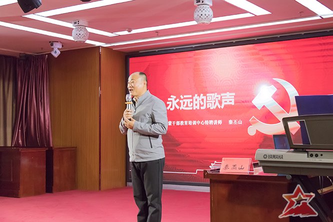 10月20日晚,培训班学员听取并参与了红歌党课,本次红歌党课教学由《沂蒙红歌集》主编秦丕山同志到场讲授。