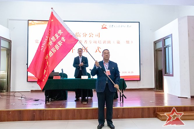 10月25日下午,培训班举行开班式,开班式上,沂蒙干部教育培训中心领导致欢迎辞并授班旗,山东高速青临分公司党委委员、副总经理陈风波同志作动员讲话。
