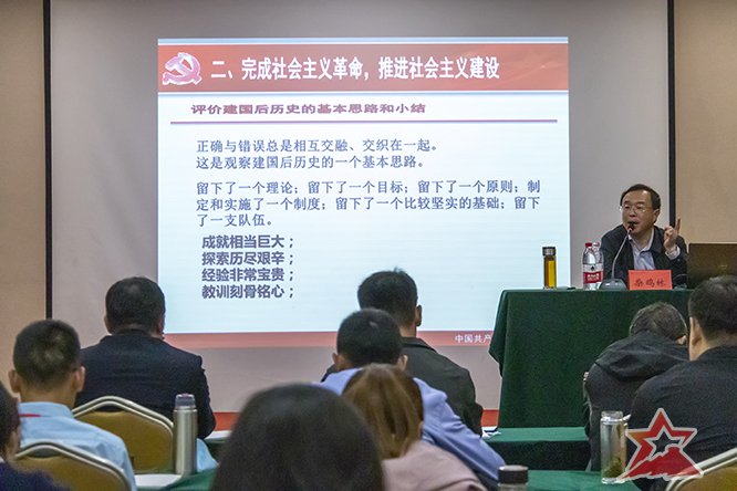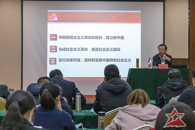 11月5日上午,由沂蒙干部教育培训中心特聘教授、临沂市人大常委、中共临沂市委党校原副校长柴鸥林讲授了《中国共产党的光辉历程》专题教学。