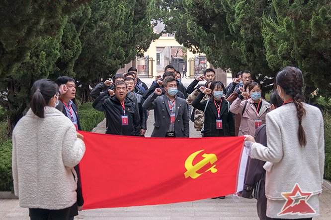 下午,培训班学员来到了大青山突围纪念馆进行现场教学。学员们瞻仰了英烈纪念碑,向革命英烈敬献了花篮,所有党员面对鲜红的党旗,庄严举起右拳,重温了入党誓词。