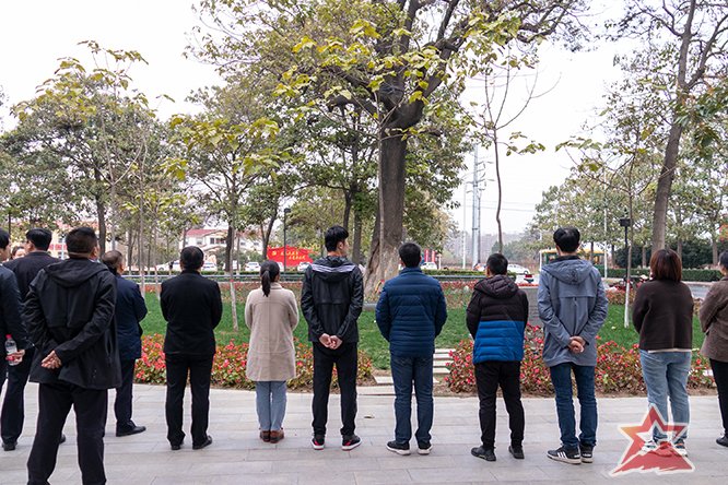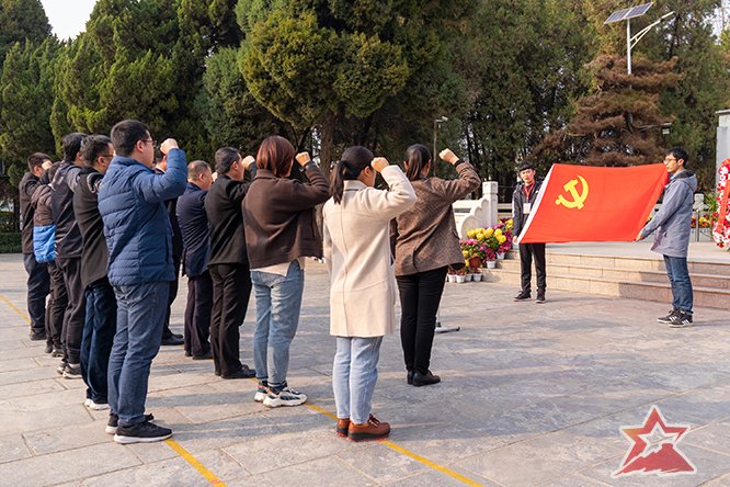 11月20日下午,培训班学员来到了焦裕禄纪念园进行现场教学。学员们怀着无比崇敬的心情瞻仰了焦裕禄烈士纪念碑,在庄严肃穆的氛围中,向焦裕禄烈士墓敬献了花篮,随后,所有党员面对鲜红的党旗,庄严举起右拳,重温了入党誓词。