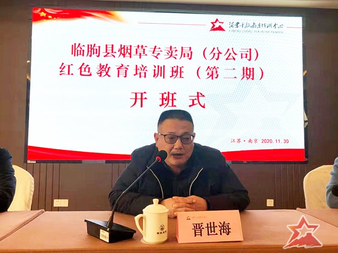 11月30日下午,培训班举行了开班式,本次开班式由沂蒙干部教育培训中心常务副主任邢庆杰主持,中共江苏省委党校(省行政学院)青干院培训处处长晋世海致欢迎辞并授班旗。培训班班长,临朐县烟草专卖局(分公司)副主任科员宋利香同志作动员讲话。