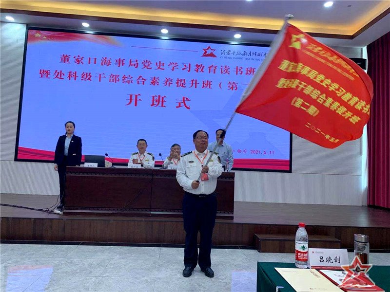5月11日下午,培训班举行开班仪式,在开班仪式上,临沂沂蒙干部教育培训中心副主任、教育长王德川致欢迎辞并授班旗,董家口海事局党委副书记、纪委书记兼政委吕晓剑作动员讲话。