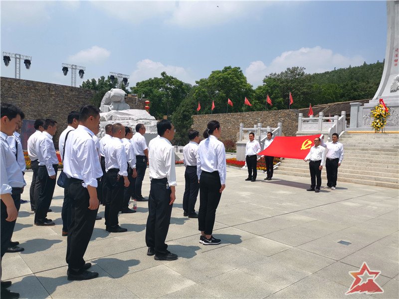 在红嫂纪念碑前,全体党员庄严的举起右手,面对鲜红的党旗,重温入党誓词,用铿锵的语调,向党承诺:“……为共产主义奋斗终身,随时准备为党和人民牺牲一切,永不叛党。”