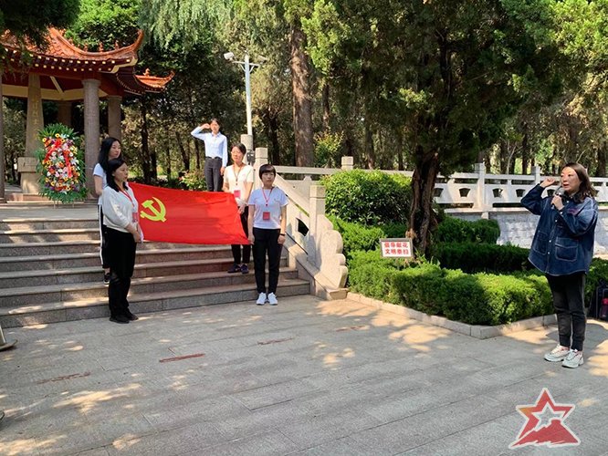 下午,在大青山突围纪念馆进行现场教学,并在抗日烈士公墓前,向革命先辈敬献花篮、缅怀先烈、重温入党誓词。