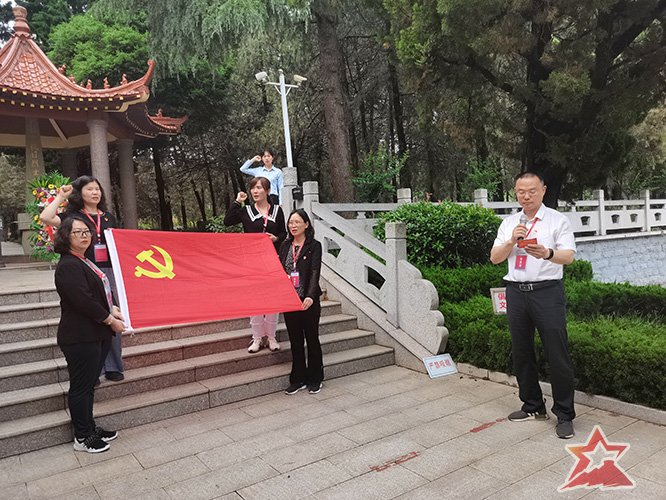 下午,在大青山突围纪念馆进行现场教学,并在抗日烈士公墓前,向革命先辈敬献花篮、缅怀先烈、重温入党誓词。