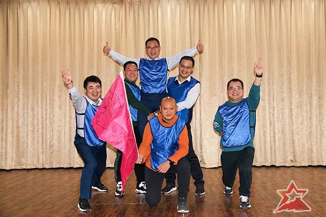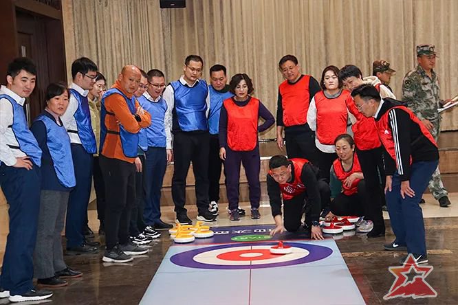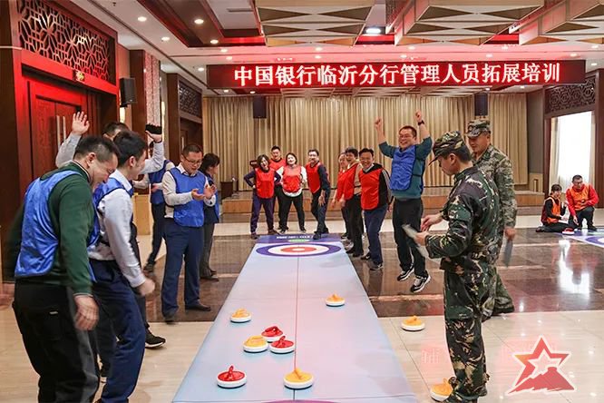 拓展培训通过间隔报数分组,“成语接龙”、“冰壶对抗”等项目,使每个人都参与其中。