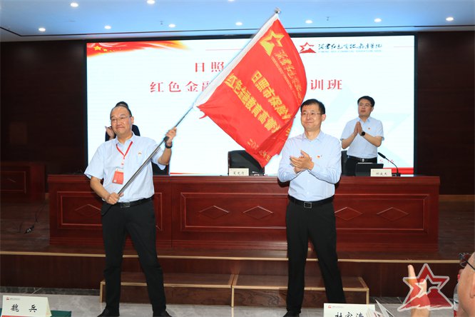 日照银保监分局党委委员、副局长夏克清出席开班式,并为本班授班旗。沂蒙精神教育培训中心党支部书记、常务副主任邢庆杰致欢迎词。日照银保监分局、日照保险行业高管共55人参加本次培训。