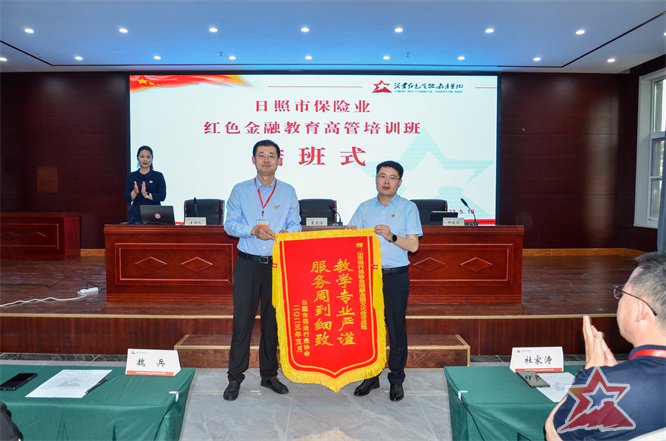 经过三天的学习培训,大家认真聆听、用心体会,以积极的学习态度和严谨的学习纪律全身心参与,展现了日照市保险业高管人员的优良素质和良好形象。在结班式上,双方领导为学员颁发结业证书,委托培训单位和参训学员对本次培训给予高度评价,特意为教育基地赠送了“教学专业严谨 服务周到细致”锦旗,表示感谢。