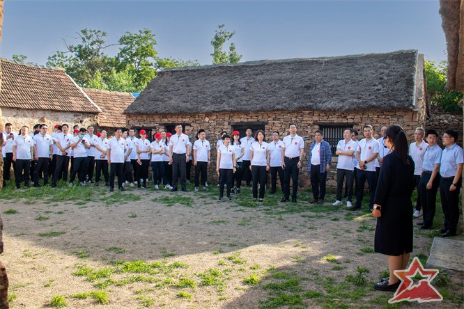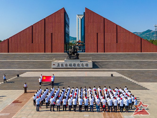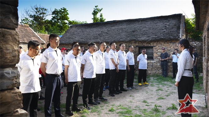 在孟良崮战役纪念馆前,王珺书记带领党员干部,面对鲜艳的党旗,重温入党誓词。铿锵有力的誓词,表达着庄严的承诺与坚定的决心:永葆共产党员的政治本色,不负时代的使命与组织的重托。