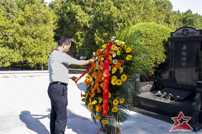 在粟裕将军墓碑前,敬献花篮、缅怀先烈、重温入党誓词。