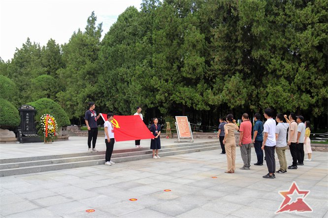 在英烈亭前,敬献花篮、缅怀先烈、重温入党誓词