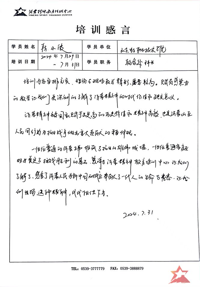 (关键字:师德师风、教师培训、四有好老师、教师素质培训、教师修养培训、教师集中培训、党性教育、沂蒙党性教育、临沂党性教育、党性教育基地、沂蒙红色金融教育基地、山东省银行保险业红色金融教育基地、党性教育培训、党务工作者培训、干部培训、干部学院、干部教育基地、干部教育课程、红色教育、红色教育培训、沂蒙红色教育、临沂红色教育、沂蒙精神、沂蒙精神教育培训中心、国企党建、国企培训、机关党建、红色培训、革命传统教育、爱国主义教育、沂蒙干部学院、沂蒙干部教育培训中心、井冈山干部学院、延安干部学院、红旗渠干部学院、遵义干部学院、临沂市委党校、人大培训、政协培训、统战培训银行业培训、检察院培训、法院培训、工会培训、保险业培训、主题党日活动)