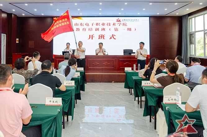 7月29日下午,山东电子职业技术学院党委副书记迟会礼出席开班式,培训中心党支部书记、常务副主任邢庆杰致欢迎词并为本班授班旗。