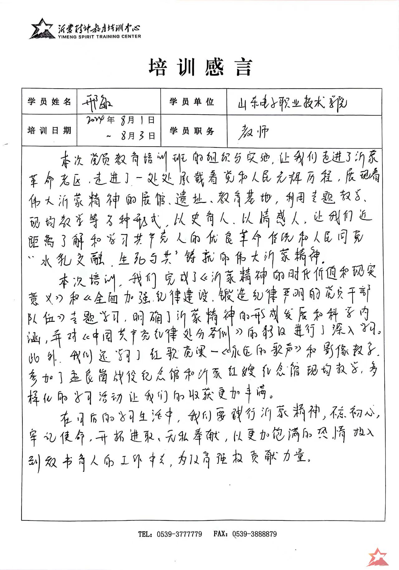 8月1日至8月3日,山东电子职业技术学院党员教育培训班(第二期)在沂蒙精神教育培训中心成功举办。共有来自山东电子职业技术学院71名教师党员参加本次培训。