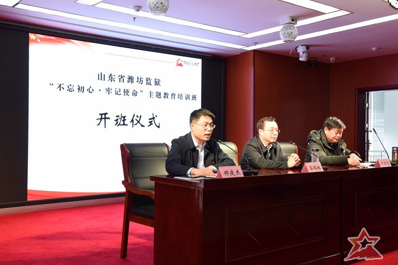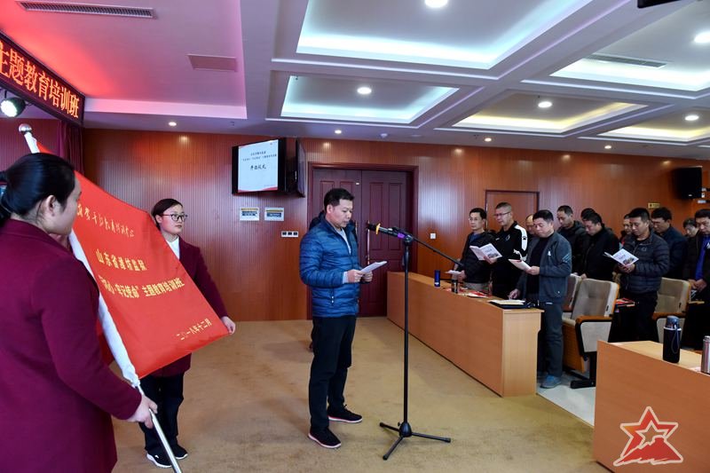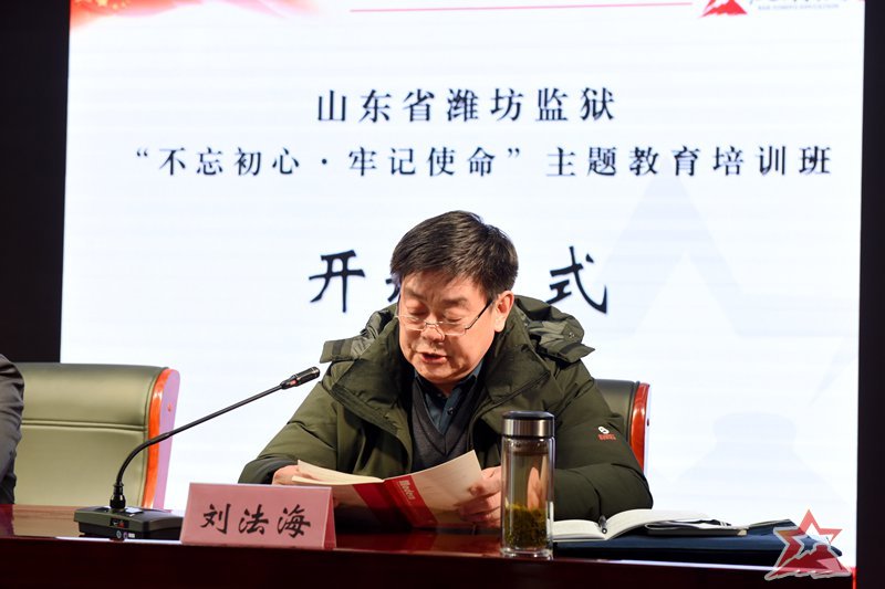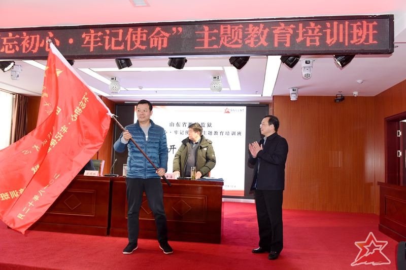 开班仪式在临沂沂蒙干部教育培训中心10楼多媒体教室举行。临沂市人大常委、山东省党建研究会理事,山东沂蒙党性教育基地特聘教授,中共临沂市委党校原副校长、教授柴鸥林出席开班仪式并致欢迎辞。柴校长向培训班学员介绍了沂蒙老区的基本情况,对培训班提出了希望。培训班带队领导,潍坊监狱狱部主任刘法海同志做了动员讲话,强调了纪律要求。他指出,监狱党委高度重视本次培训,选在第五个国家宪法日开班,很有意义,希望培训班学员同志们积极弘扬沂蒙精神,践行宪法使命,为潍坊监狱稳步发展提供思想政治保证、人才保证和智力支持。临沂市人大常委、中共临沂市委党校原副校长、教授柴鸥林为培训授旗。培训班班长刘恩文同志带领培训班学员进行了开班宣誓。