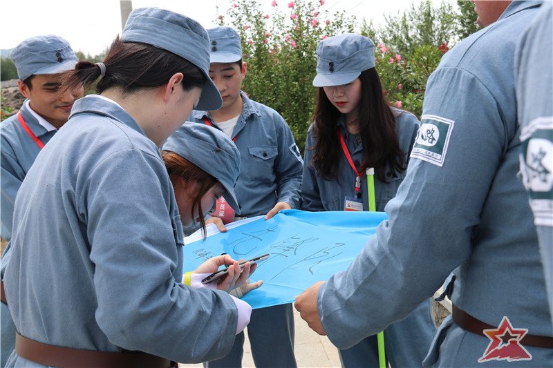 结班仪式上,颁发结业证书,学员们在班旗上签字,合影留念。