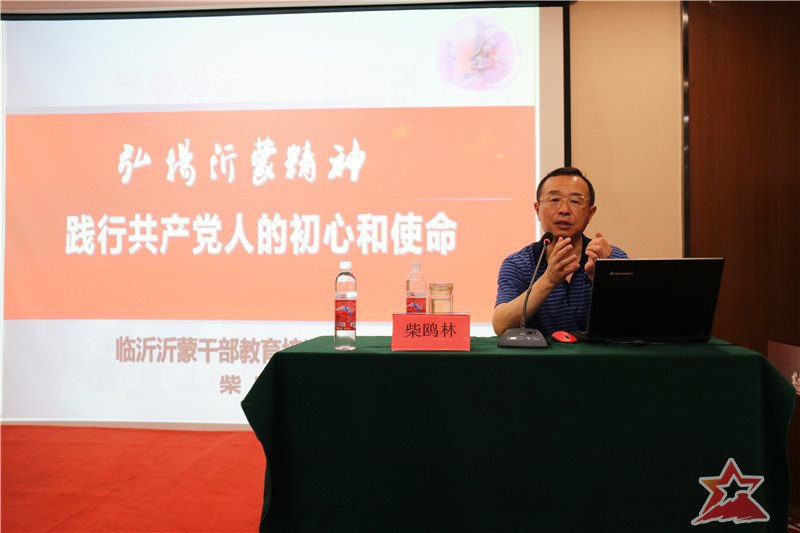 开班仪式后的第一堂课,由临沂市人大常委、山东省党建研究会理事、中共临沂市委党校原副校长柴鸥林教授讲授了《弘扬沂蒙精神践行共产党人的初心和使命》。